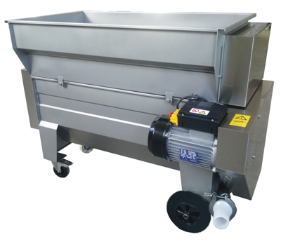 ポンプの付いているステンレス製の破砕除梗機です。 車輪があり移動できます。 |